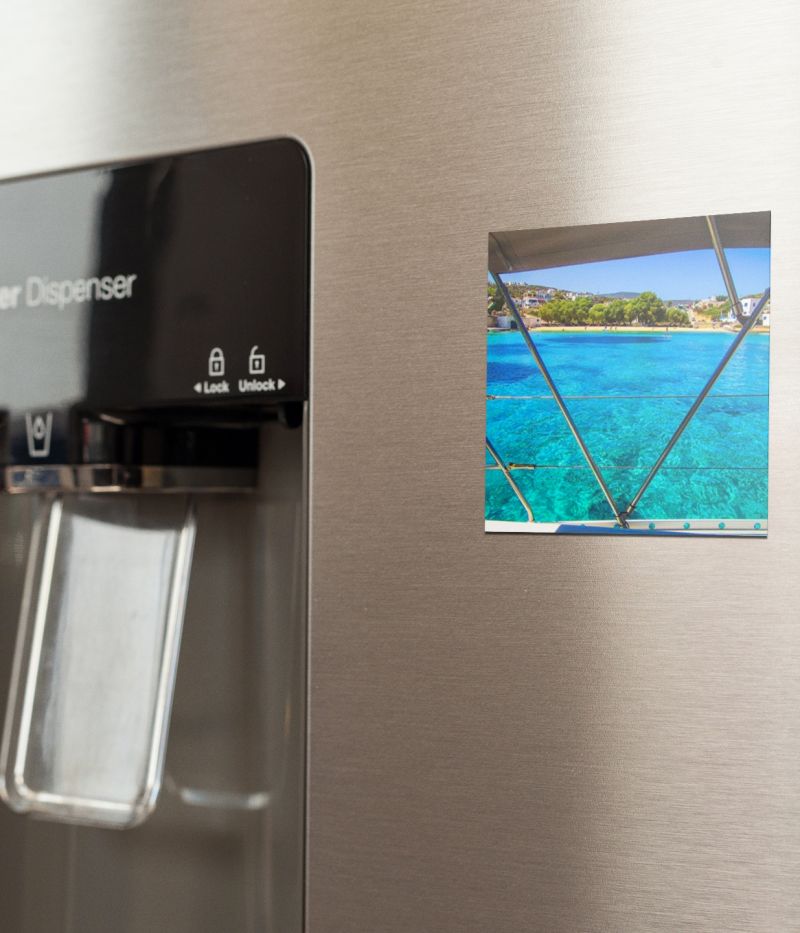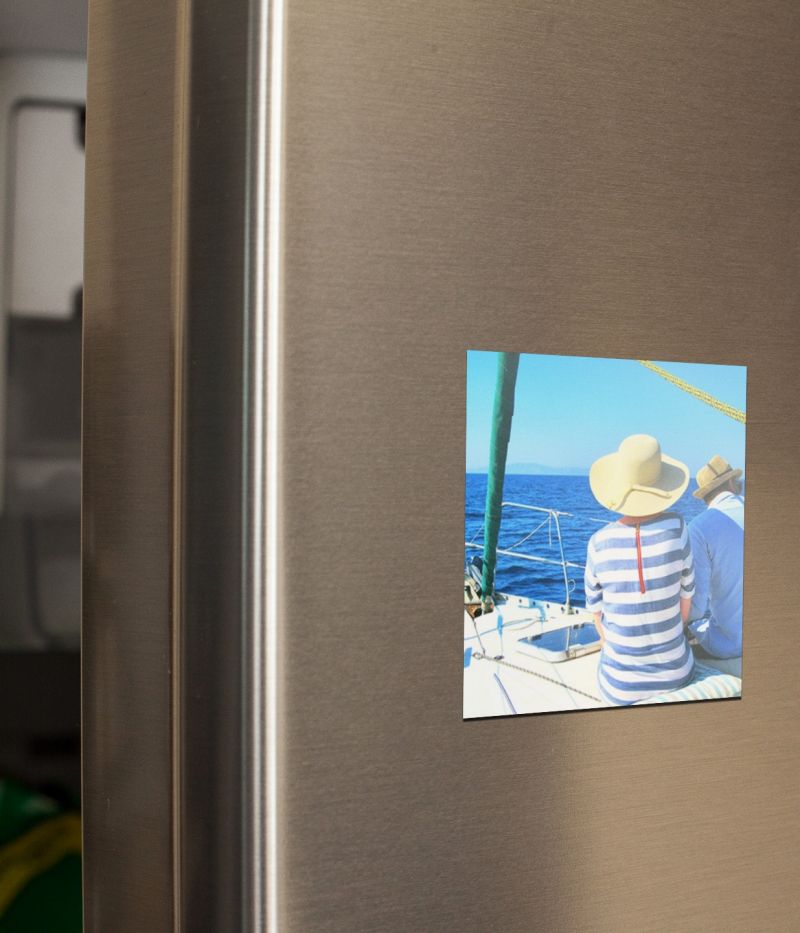 Pack de 9 aimants carrés à coller sur votre réfrigérateur, votre machine à café ou toute surface métallique! Personnalisé avec vos photos, c'est une super idée cadeau! Taille: 4.74cm x 4.74cm
